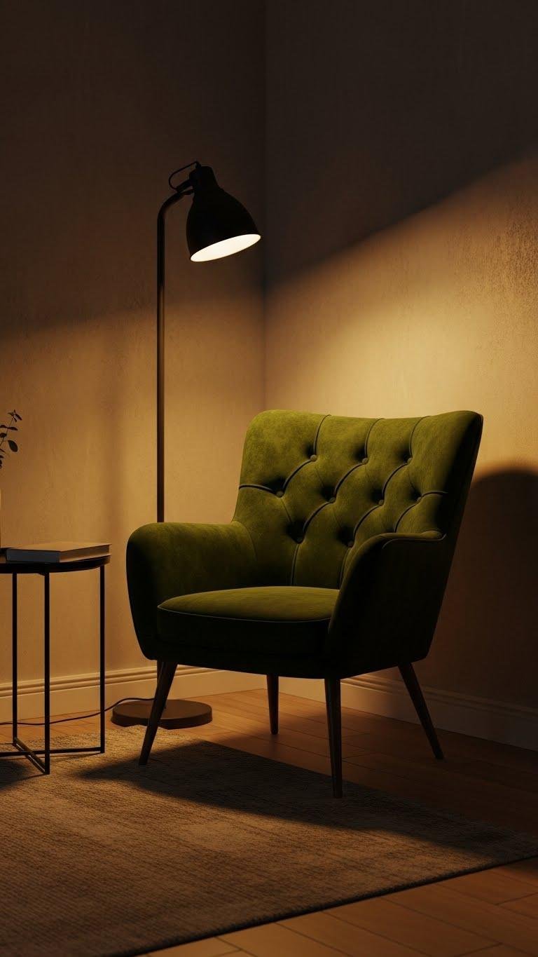 Often a single retro velvet chair can redefine a corner, turning it from overlooked to intentionally styled.