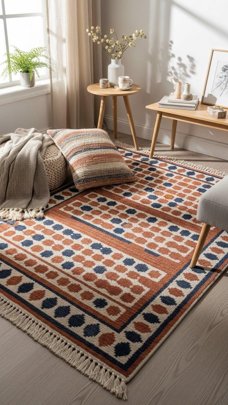 Bring a patterned rug into a tiny room to ground the layout and give everything a clear visual anchor. You’ll choose a mini rug with a confident scale pattern that expands perceived floor area, create layered textures for warmth, and use color and placement for subtle space zoning. Keep proportions bold, lines clean, and let the rug dictate flow so you feel free.