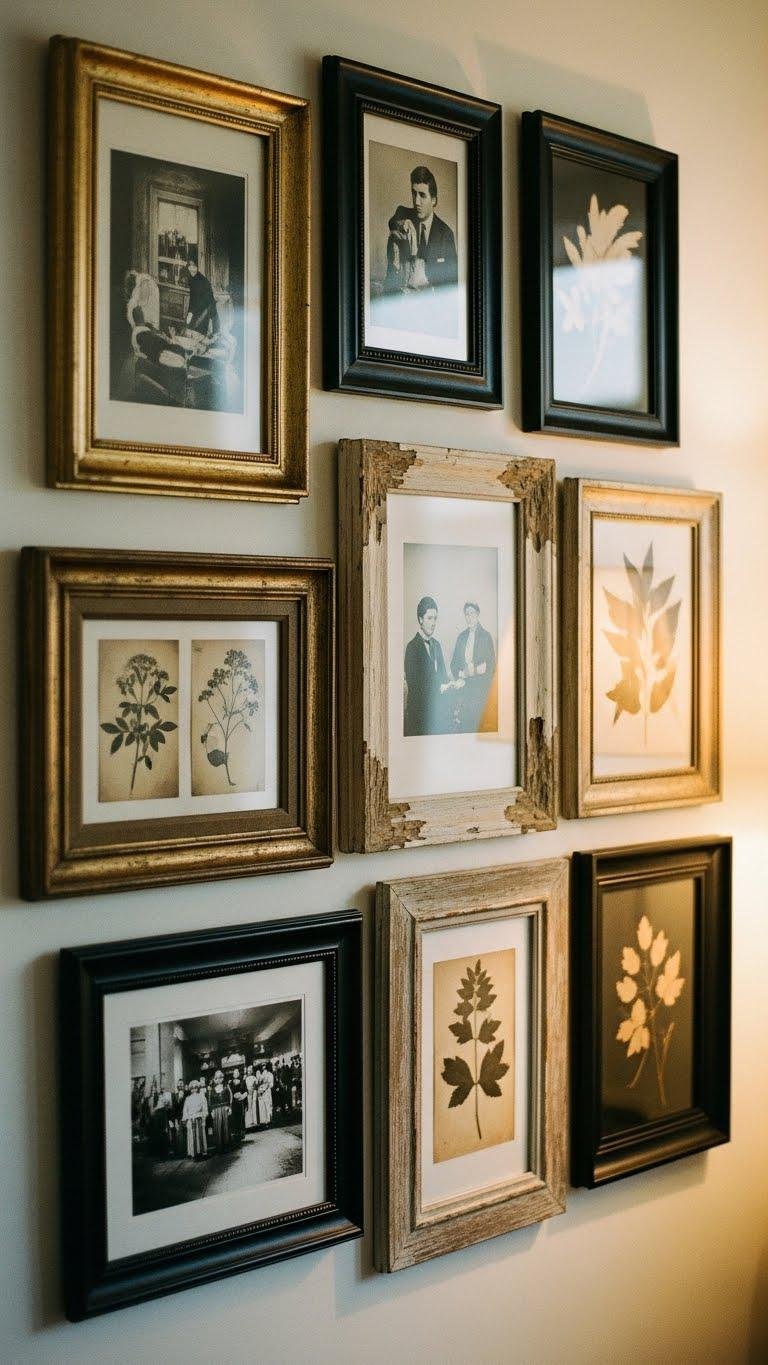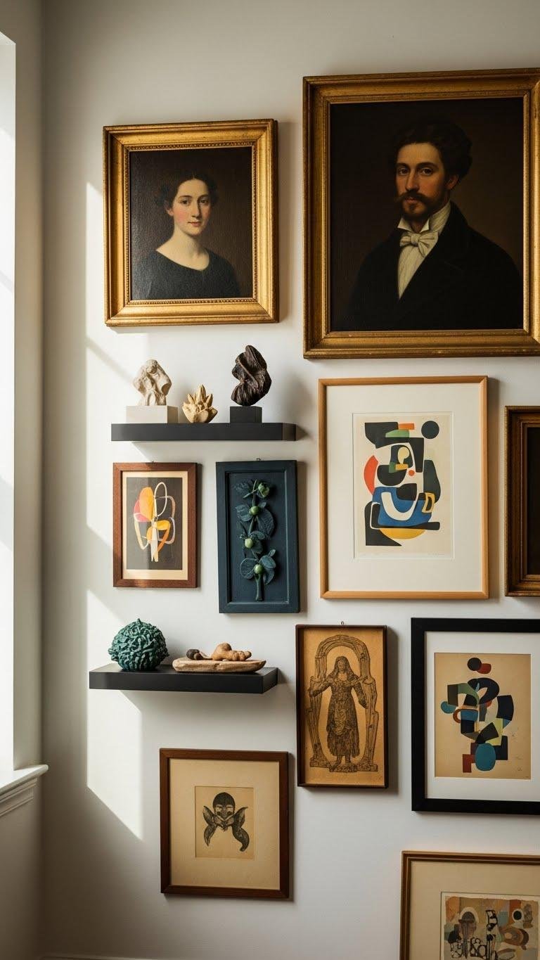 Dig through estate finds and you’ll assemble a gallery wall that reads like a carefully edited biography — a mix of old portraits, midcentury prints, weathered frames, and unexpected objets d’art that together tell a layered story.