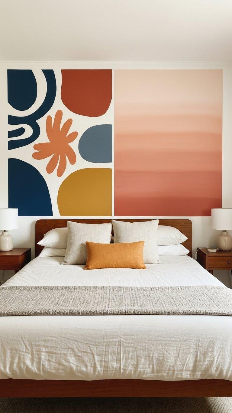 Paint a custom headboard mural to anchor your bed with instant personality and scale—think of it as wearable art that sets the room’s mood. You’ll choose bold shapes, hand drawn motifs, or a soft gradient ombre to define atmosphere. Work directly on plywood or drywall, use masking for crisp edges, and trust your instincts—this piece frees the space, becomes the room’s confident focal point.