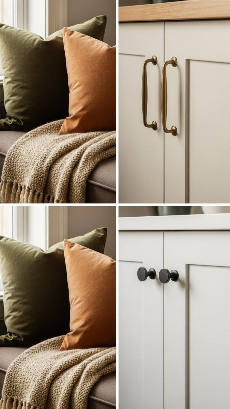 After soft textiles and rich textures ground your seating, tightening details like decorative hardware finishes your room’s story. Swap dated pulls for antique pulls to add character, or choose minimalist knobs for clean calm.