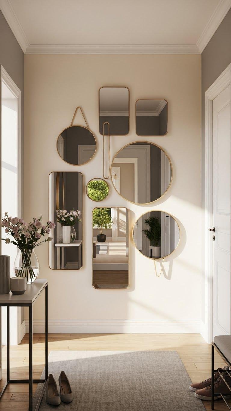 You’ll create an entryway mirrorscape that frees your path, doubles natural light, and tricks depth into small foyers.