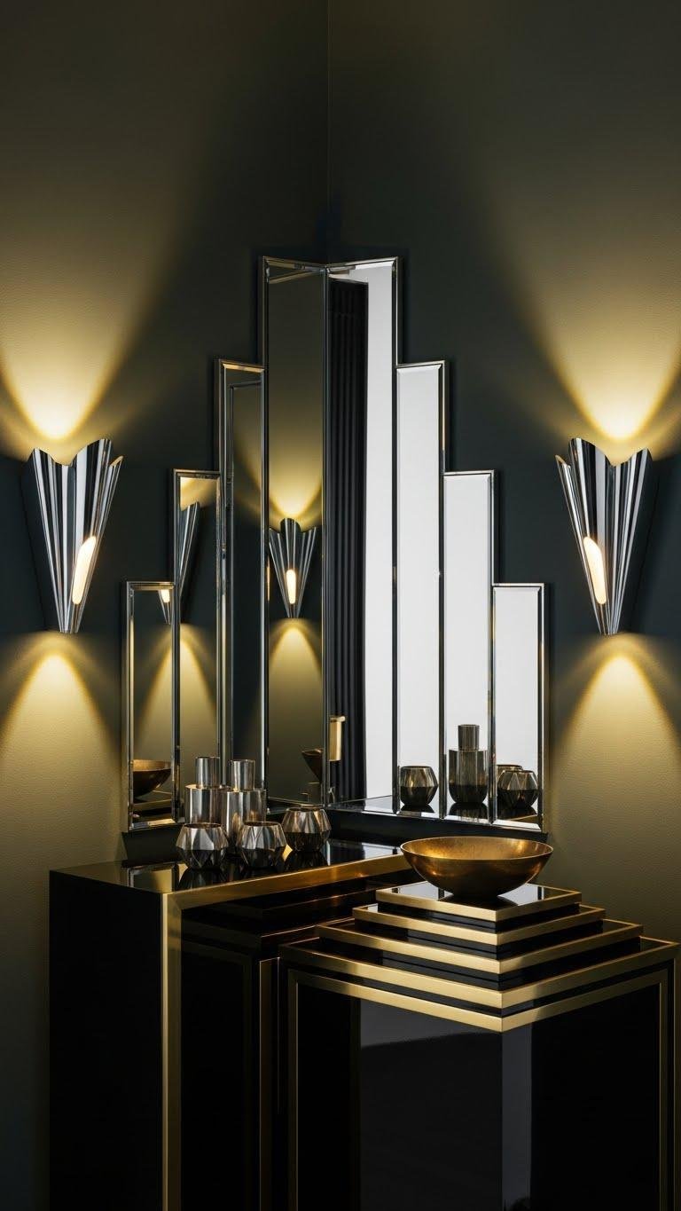 When you bring Art Deco lighting and mirrors into a room, they act like curated punctuation—bold geometry, polished metals, and stepped silhouettes that catch light and direct the eye. You’ll choose art deco mirrors to amplify space and mood, pairing reflective planes with chrome sconces for sculptural glow. The result feels deliberate, liberating: sharp lines, luminous surfaces, and confident, unfussy glamour.