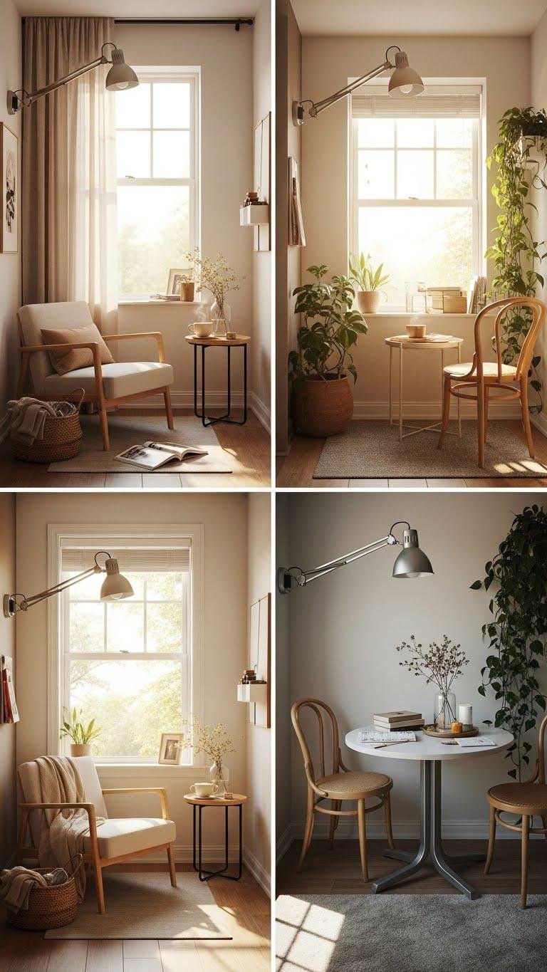 You’ll define a Magazine nook with a slim chair and basket, a Window alcove for morning coffee, a compact dining spot that breathes, and a Plant corner that softens edges.