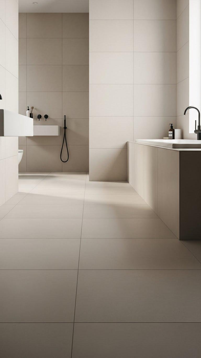 Choosing large-format tiles lets you create near-seamless surfaces that visually expand the room and reduce grout lines.