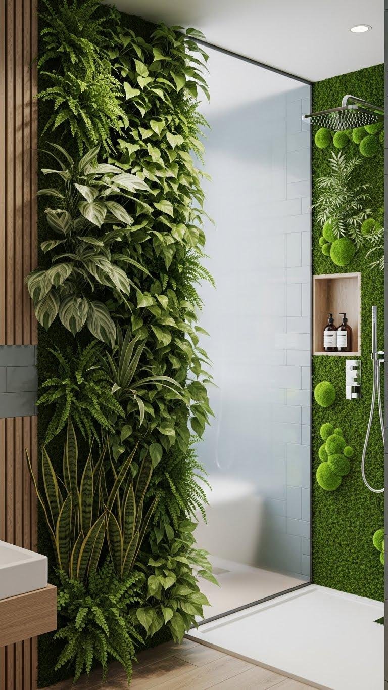 Although moisture can be a challenge, you can harness it to bring living walls or moisture‑tolerant plants into your bathroom for texture, air quality, and a restful aesthetic.