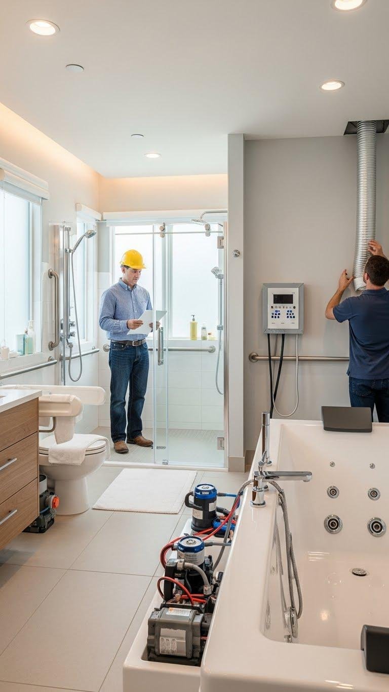 Because wellness features like accessible fixtures, ventilation upgrades, or hydrotherapy systems must meet codes and performance specs, you should budget for permitting, inspections, and certified installers from the outset. Plan compliance budgeting into your design costs, include contingency for technical upgrades, and set realistic maintenance forecasting for pumps, filters, and controls. This keeps your spa-like bathroom safe, legal, and liberating.