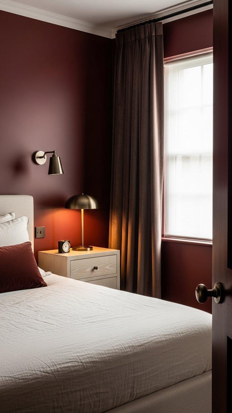 When you paint a bedroom wall in dark cherry or burgundy, you anchor the space with immediate warmth and depth; those rich tones make lighter furnishings pop and give the room a sophisticated, cozy feel.