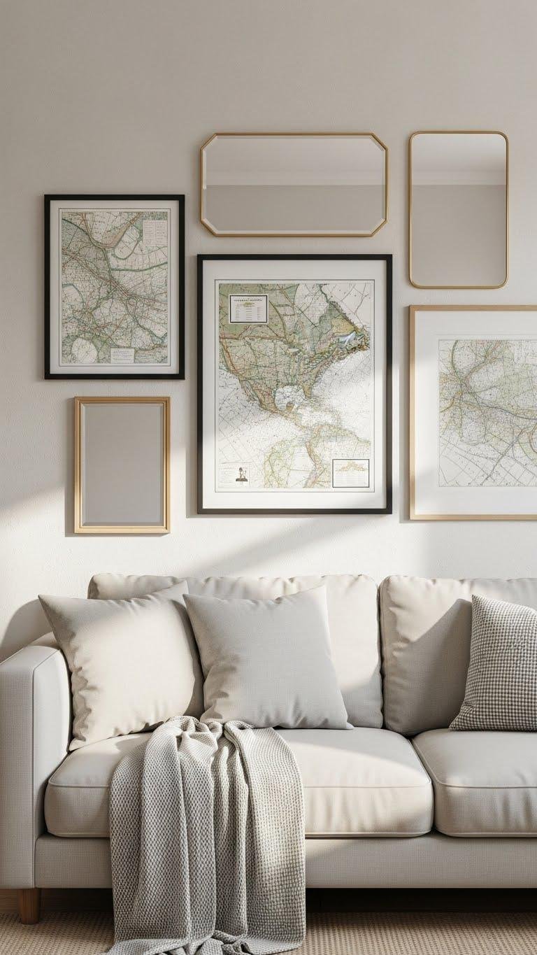 Choose framed mapprints to celebrate places that free you, mixing scales and frames for rhythm. Add beveled mirrors to bounce light and open the space without clutter. Hang intentionally, edit often, and let each piece invite calm, clarity, and personal freedom.