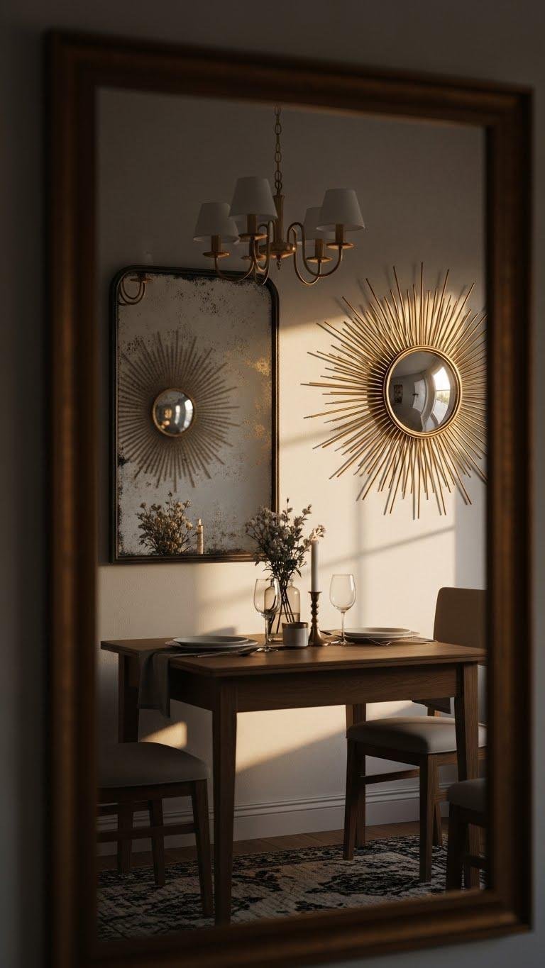 Although vintage mirrors’ve long been prized for their patina, they do more than charm — they amplify light and open up space, turning a modest dining area into something cinematic.