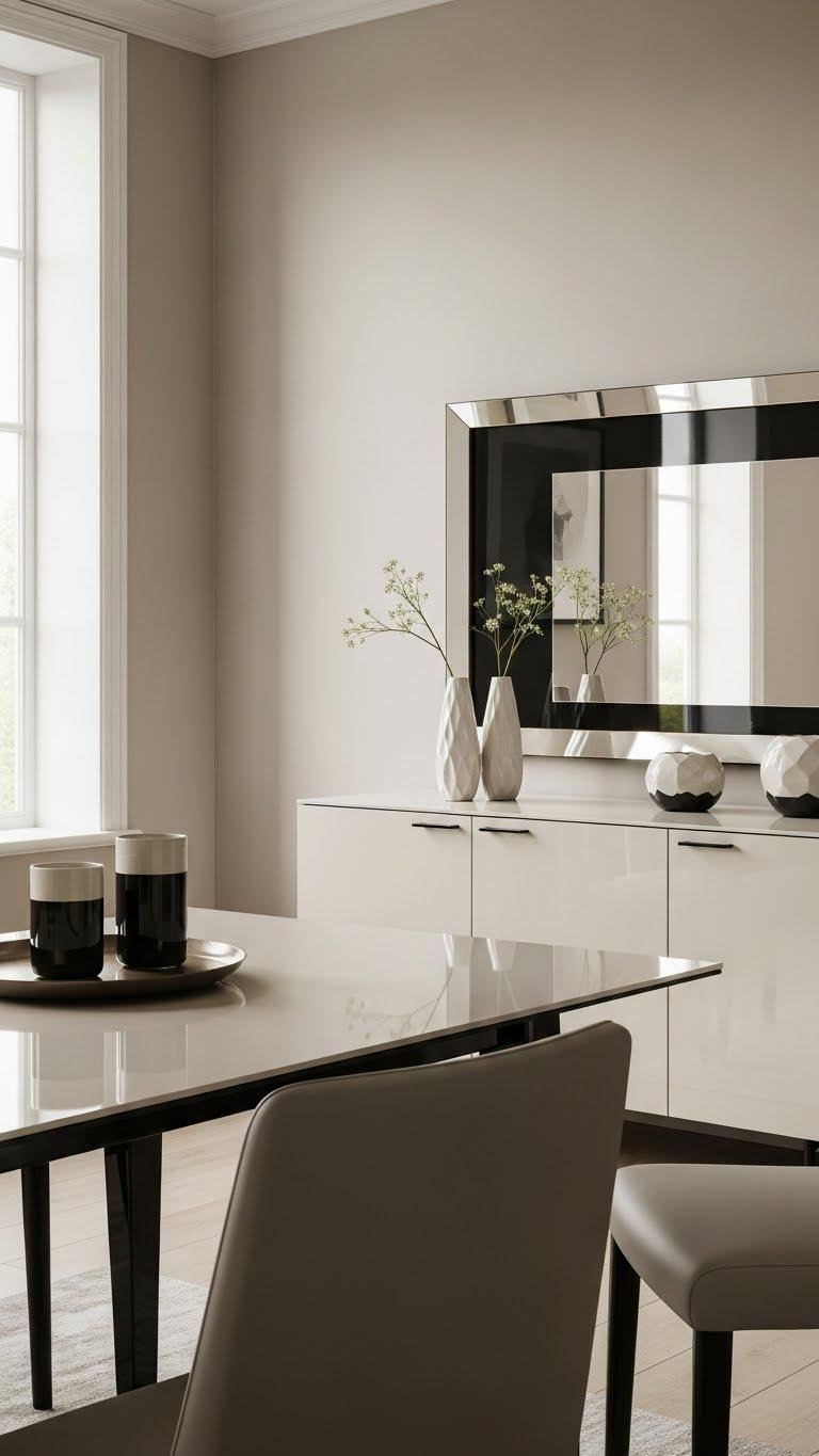 Layered lacquer catches light without shouting, giving your dining room a quiet, reflective glamour that lifts a neutral palette. You’ll choose high gloss accents and mirrored lacquer pieces to create depth and subtle shimmer without clutter.