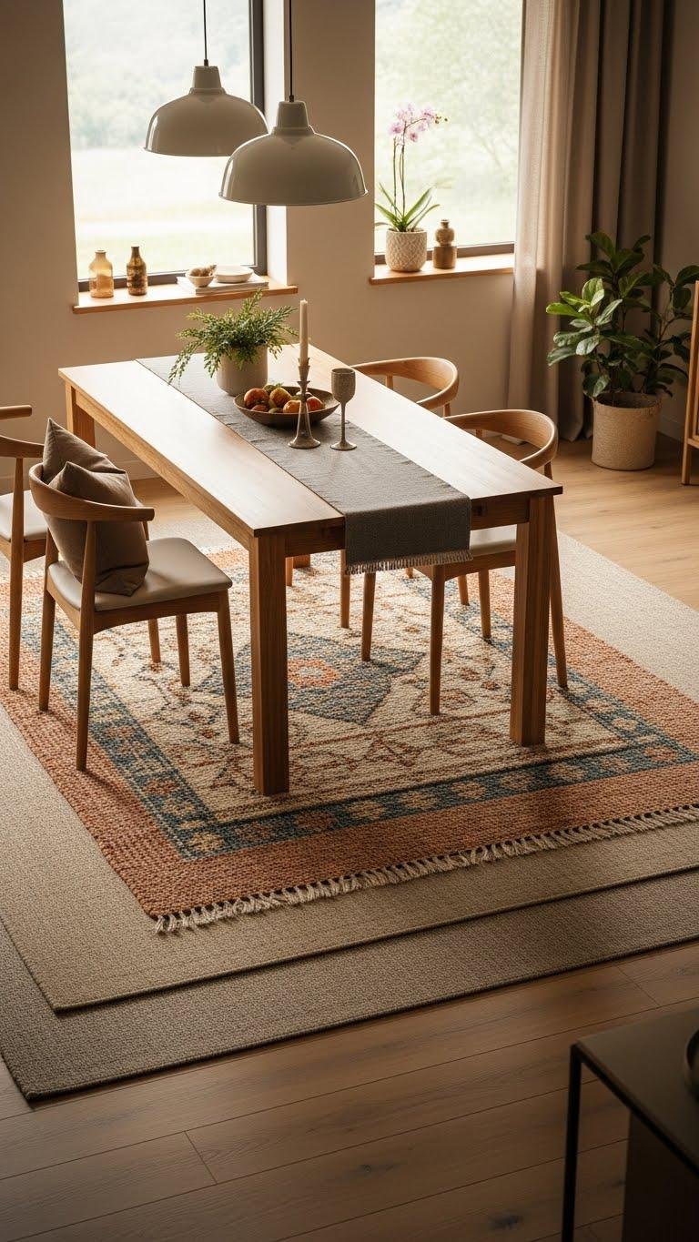 Choose a durable base rug and add a smaller, textured piece for contrast—Layered textures create warmth and movement.
