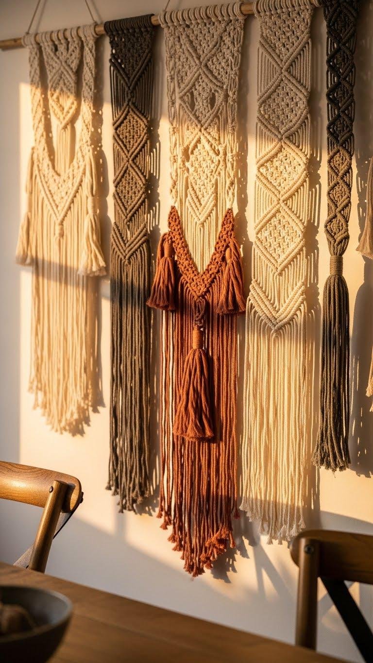 Bring tactile warmth to your dining walls with macramé hangings that layer pattern and softness without stealing the show.