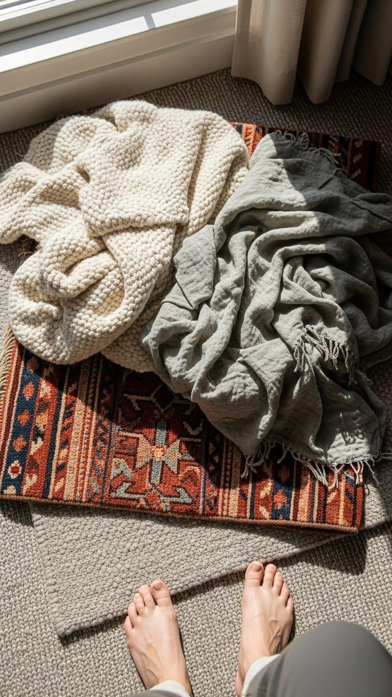 You’ll mix a vintage kilim for story, a sisal overlap for earthy grit, and a plush accent for comfort.