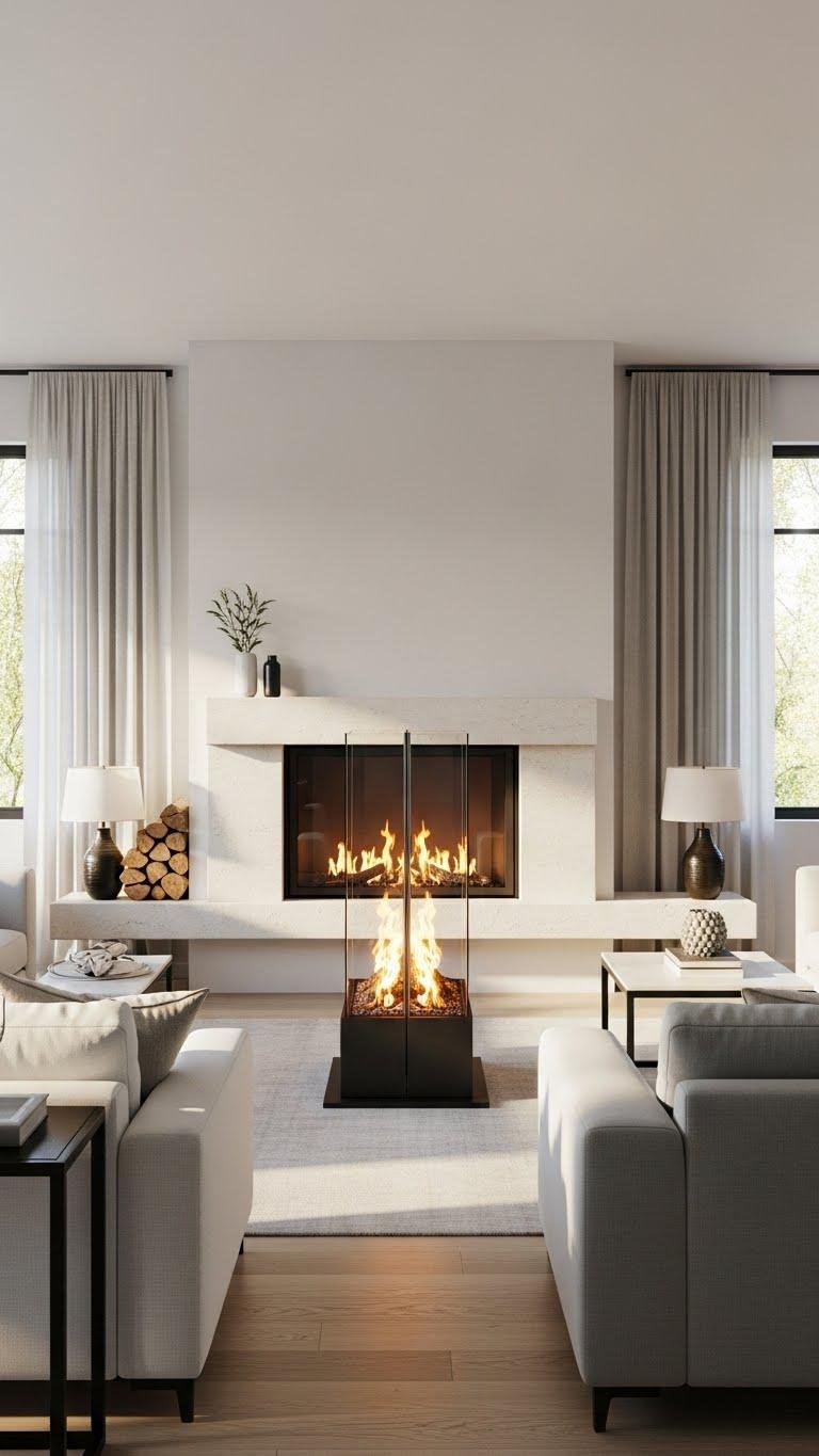 Install a Double‑Sided Room‑Divider Fireplace
