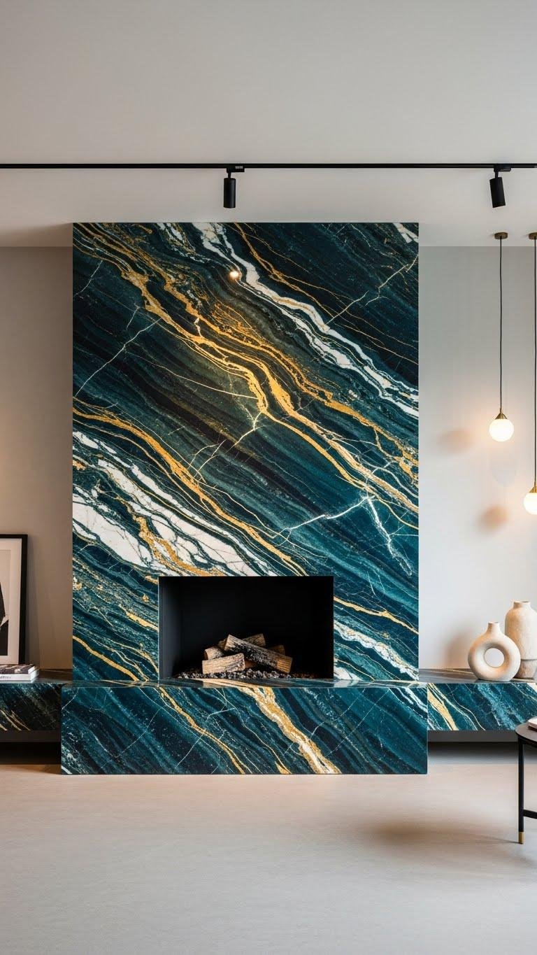 Why not let charcoal or black marble become the focal point of your fireplace? Choose slabs with bold charcoal veining and refined black marblework to create a liberated, modern anchor.
