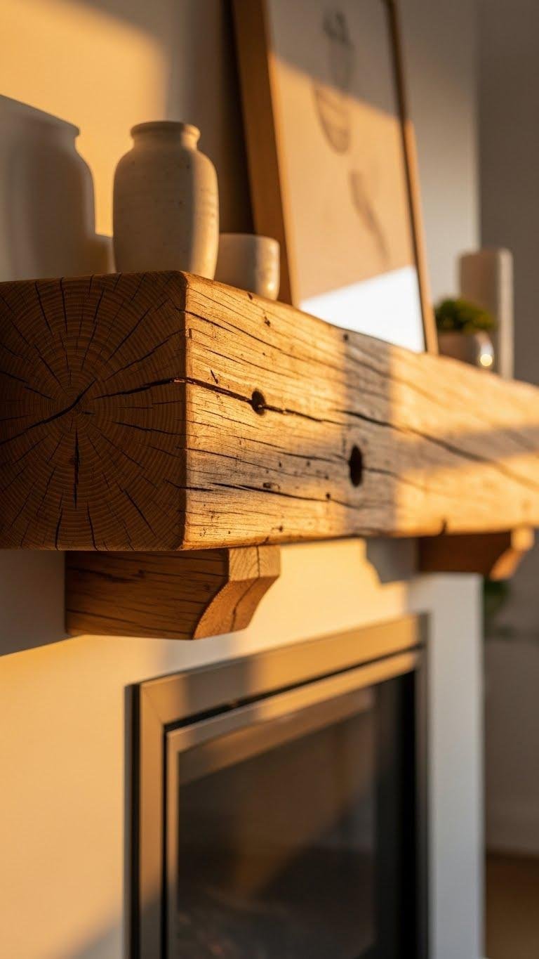 If you loved the rustic heft of a reclaimed beam but want a sleeker look, a floating mantel shelf gives you that cleaner, modern silhouette while still bringing warmth and personality to the fireplace.