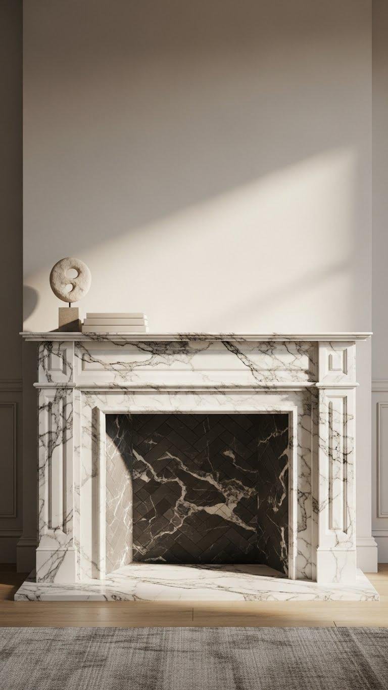 Because marble instantly elevates a room, choosing a marble mantel lets you make a high-impact statement with surprisingly little fuss; its natural veining and cool sheen read as both timeless and on-trend, grounding any fireplace with refined presence.