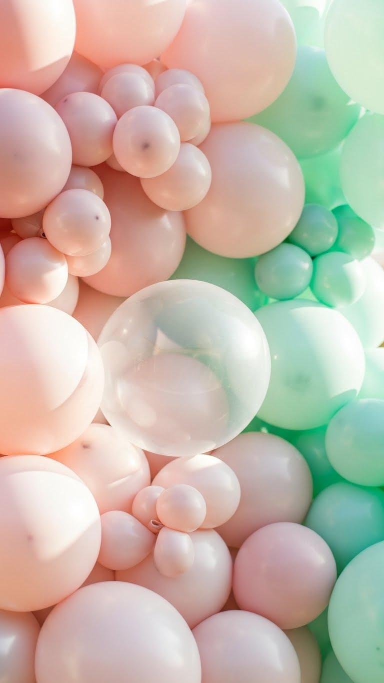 Kick off your Galentine’s vibe with a soft pastel balloon wall that mixes matte, pearlescent, and translucent finishes for instant depth and texture. You’ll layer matte shimmer balloons with glossy pearls, letting ombre texture flow from blush to mint. Arrange loose clusters for movement, anchor with clear tape, and keep the look airy so friends feel free to pose, laugh, and stay.