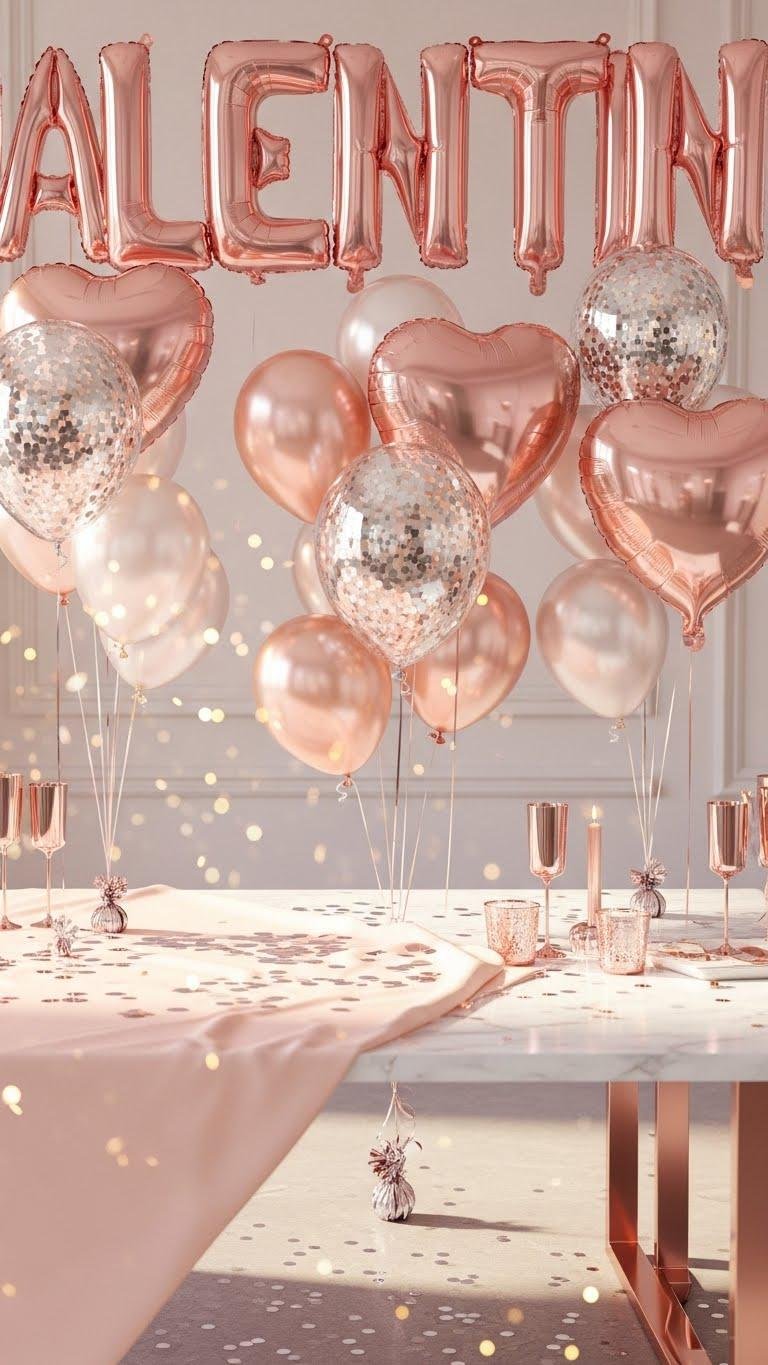 Add a touch of sparkle with metallic or rose-gold balloons and confetti to instantly elevate your Galentine’s vibe—mix matte and mirrored finishes, oversized letter or heart shapes, and a scattering of delicate foil confetti to catch the light.