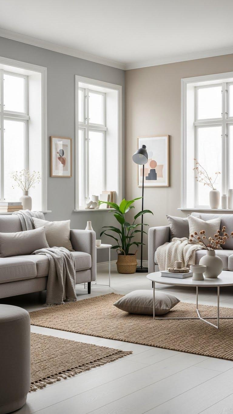 You’ll lean into cool gray for sleek minimalism or warm beige for cozy openness, then layer textures, matte finishes, and natural light to keep things airy.