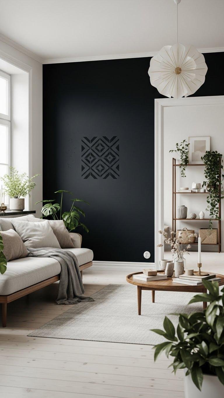 If your newly neutral living room feels a little too restrained, try creating an accent wall to anchor the space and give it instant personality. Pick a bold color or matte black, layer textured paint for depth, or stencil sleek patterns with geometric stencils for modern drama.
