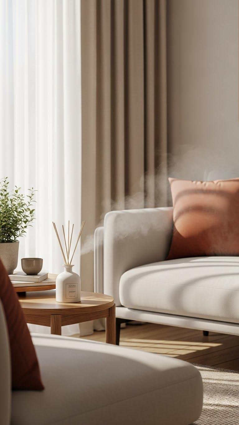 You’ll want a subtle diffuser to be as effortless as the rest of your styling—its scent should register like a soft exhale, not an announcement. Choose minimalist vessels and natural oils for scent layering: citrus top notes, herbal heart, warm base. Think diffuser placement near airflow and seating, not center stage, so aroma drifts freely. It’s quiet luxury that feels liberating.