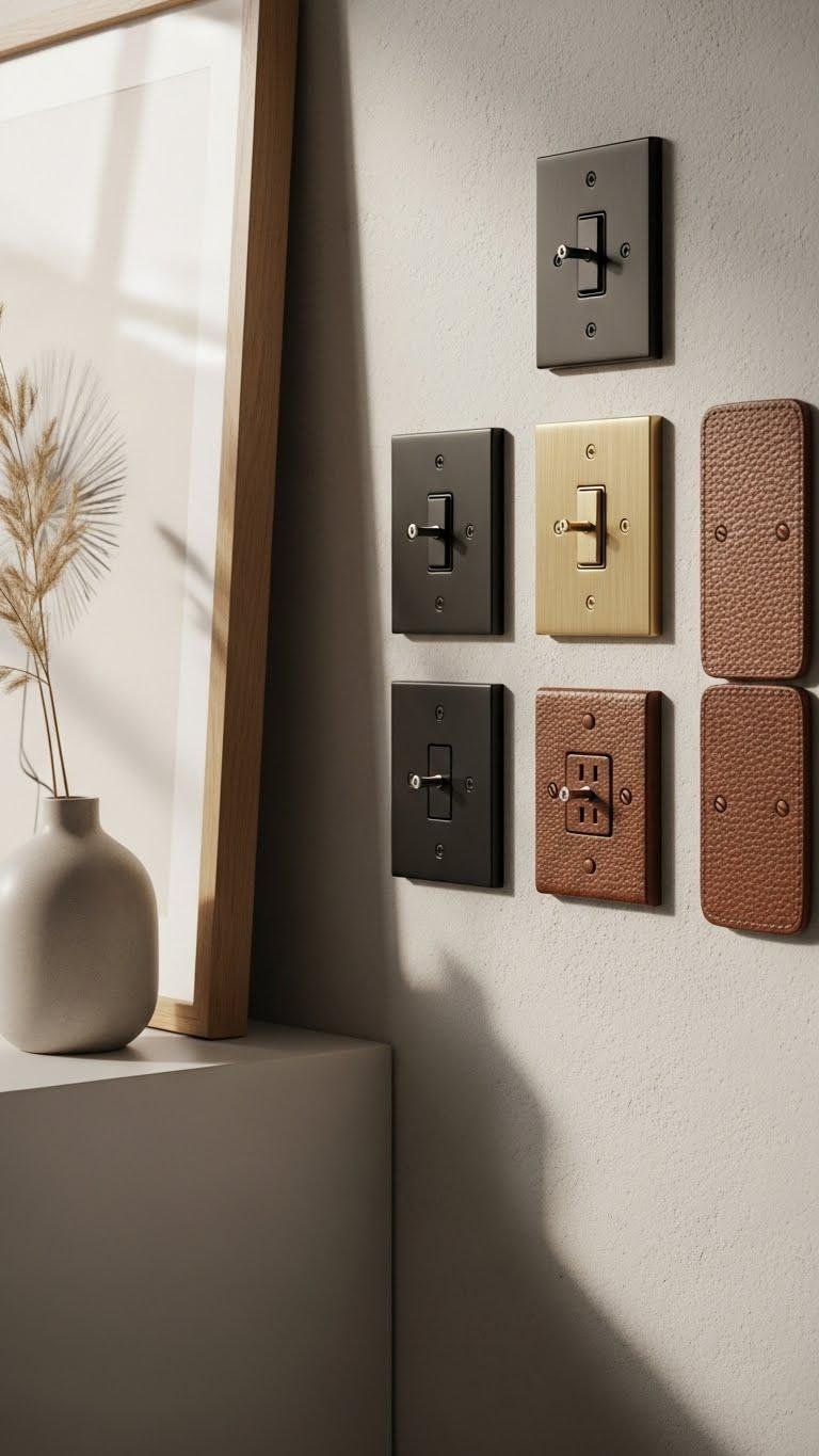 Swap out dingy plastic plates for sleek metal or textured covers to make small details pop. You’ll refresh rooms instantly by swapping standard white for matte black, brass, or leather-look decor switchplates that echo your vibe.