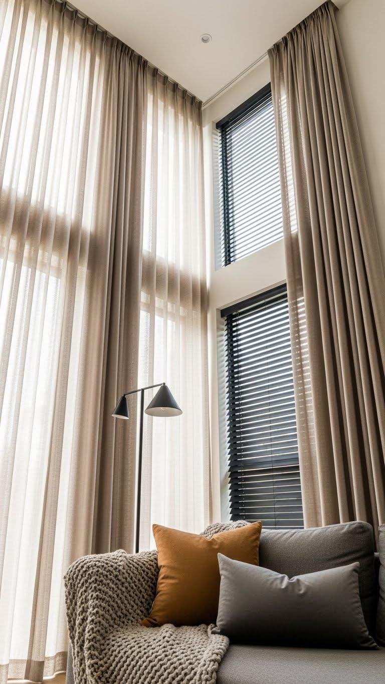 Pair those refreshed pillows and a chunky knit with window treatments that lift the room: floor-to-ceiling curtains or blinds stretch the eye upward, add drama, and control light without fuss.