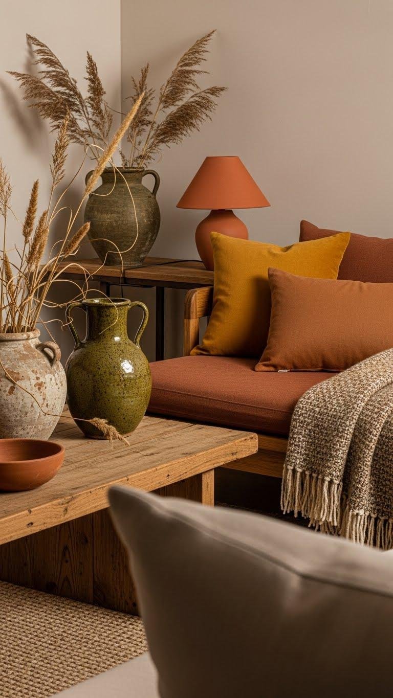 When you choose a warm earthy palette, you anchor a room with tones that feel lived-in and deliberately collected; think clay, ochre, mossy olive, deep terracotta, and soft mushroom grays that read as natural and refined.