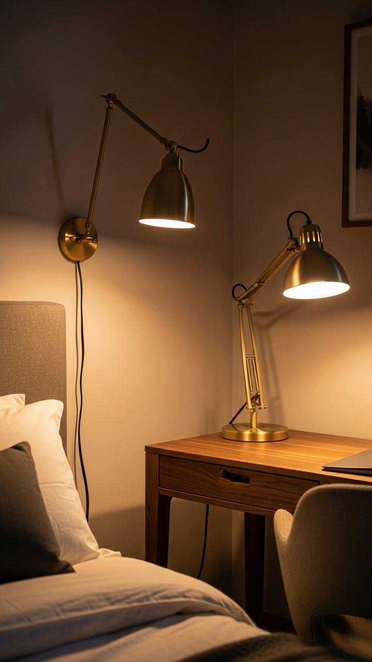 You’ll choose adjustable sconces or a swing arm for focused bedside reading, pair dimmable floorlights with wide-beam task lamps at desks, and layer brightness to suit projects or relaxation.
