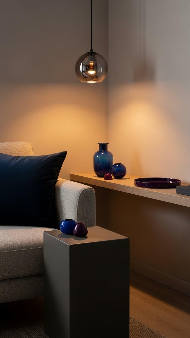 When you add deep, moody accents in small doses, they anchor a room without overwhelming it—think a velvet cushion in ink-blue, a matte charcoal side table, or a single smoked-amber pendant.