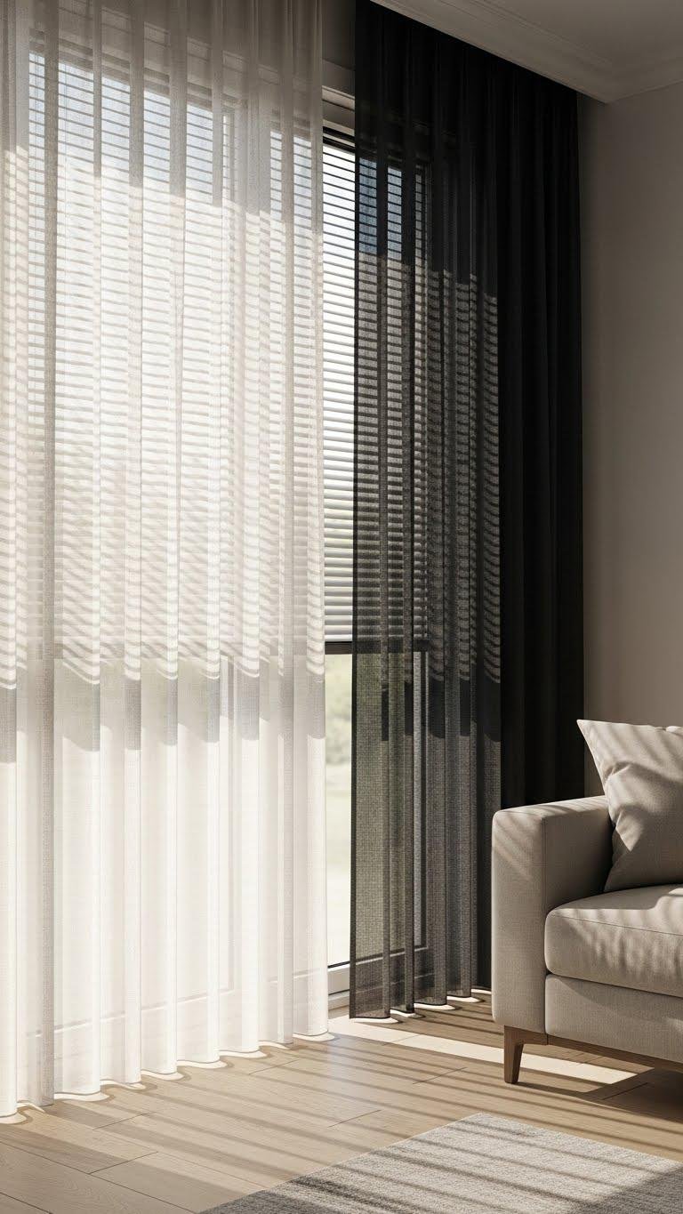 If you want layered light that feels deliberate and soft, start with a base of sheer panels and add heavier drapery or blinds to control glare and privacy.