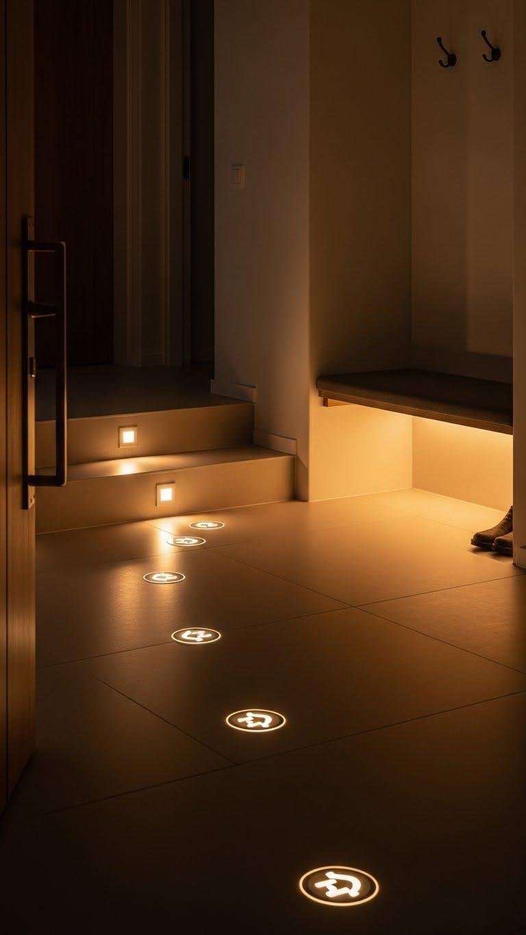 When daylight fades, subtle wayfinding lighting guides you through the entry without jolting the senses; think low-level, warm-toned fixtures that illuminate paths and key touchpoints—stair edges, a bench nook, hooks—so you can move safely and calmly at night.