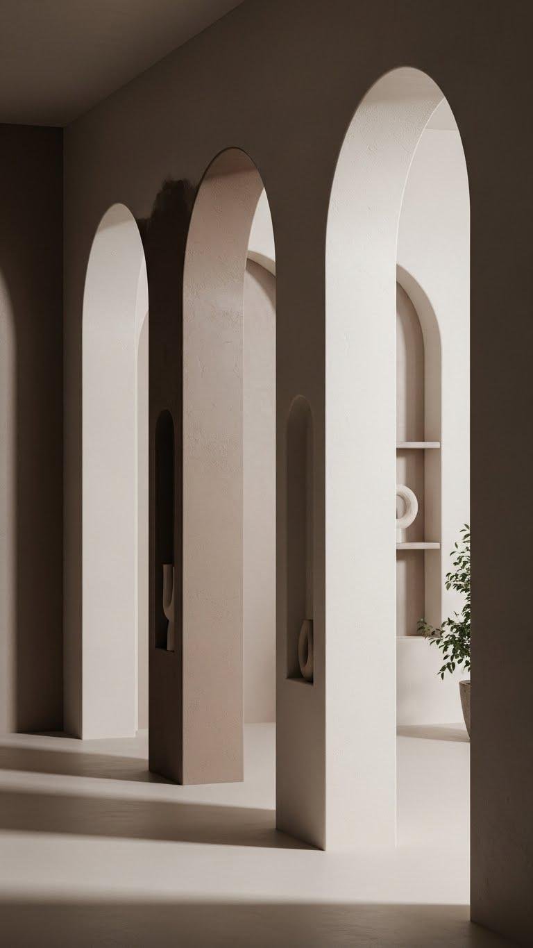 Although rooted in classical architecture, arched doorways and niches feel unexpectedly modern when you use them as curated frames for movement and objects. You’ll emphasize flow by aligning sightlines and pairing arched niches with minimal furniture. Use plaster alcoves to showcase sculpture, plants, or concealed shelving. Keep finishes muted, lighting directional, and scale deliberate so each opening reads like intentional, liberating architecture.