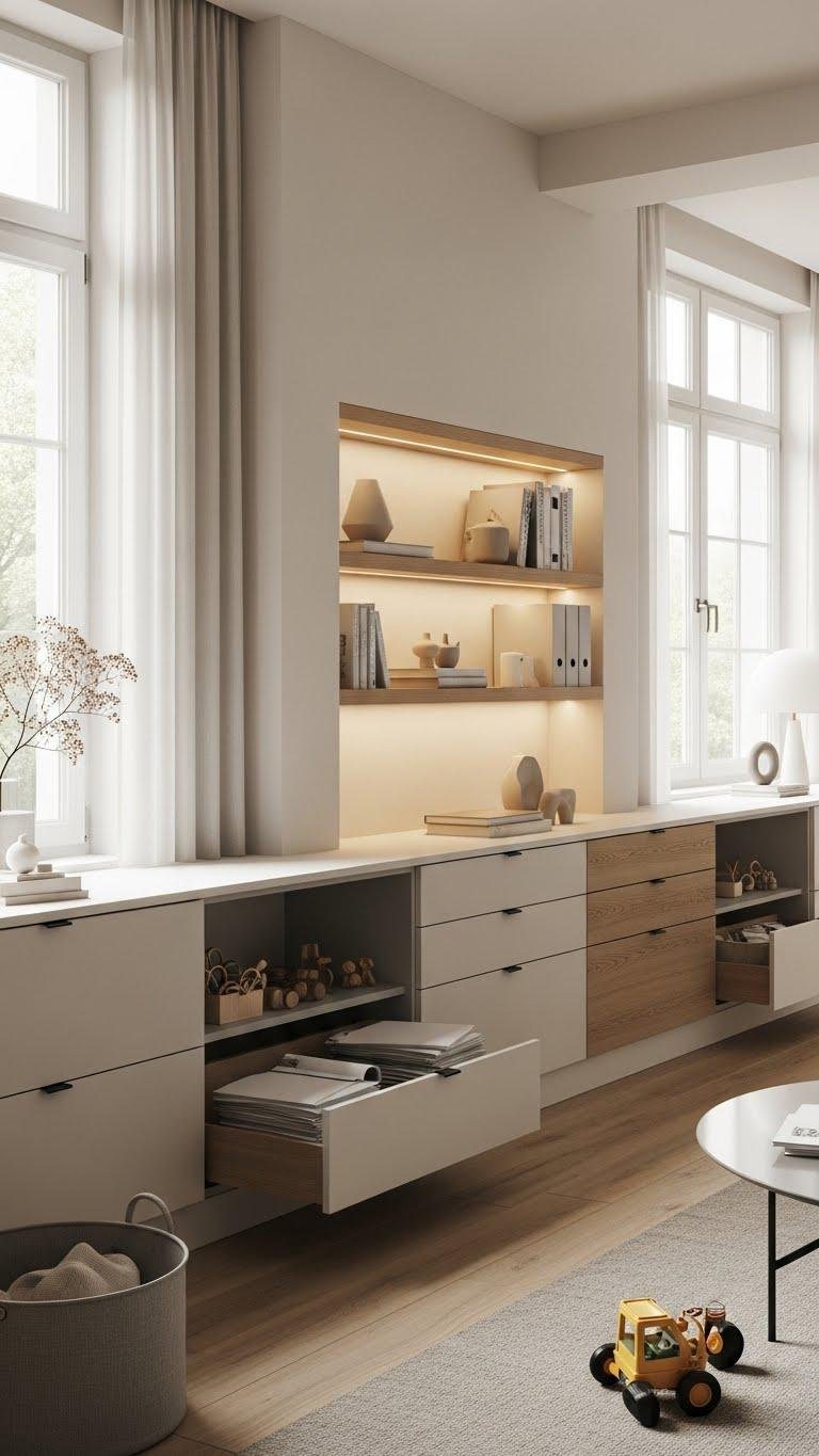 You’ll love hidden cabinetry for stashing papers and toys, and recessed shelving to display a few prized objects. Choose streamlined finishes, modular inserts, and thoughtful lighting so storage feels liberating, not confining, and your space stays peaceful.