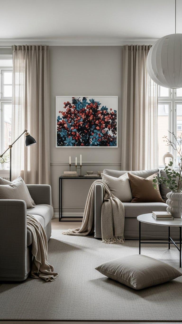 Grounding main rooms in a neutral base gives your furnishings and accents room to breathe and lets seasonal hues sing without overwhelming the space.