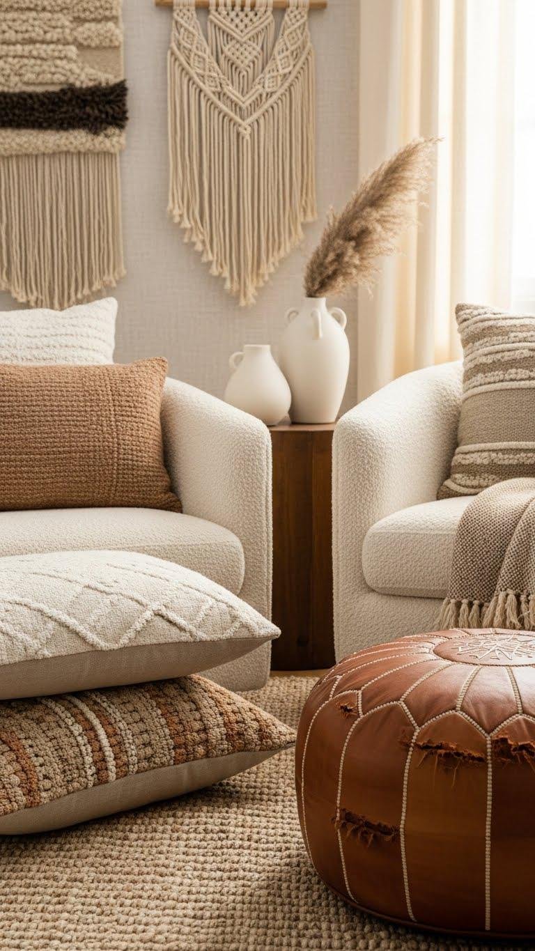 When you layer varied textures—think nubby linen, soft boucle, worn leather, and a low-pile woven rug—you give a room immediate depth and a tactile narrative that invites touch.
