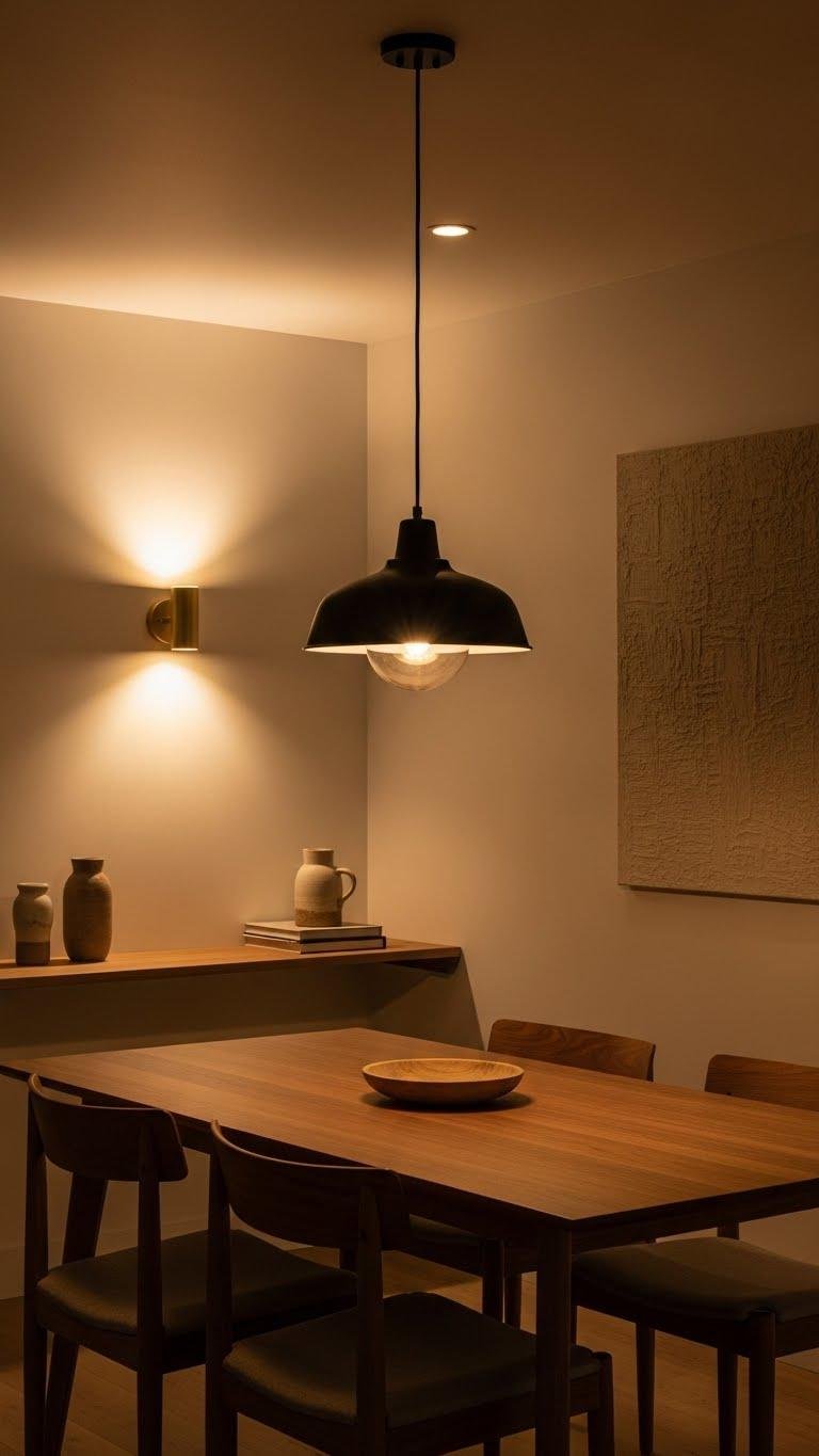 Mix a dimmable pendant over dining or workspace with recessed ambient lights, then add an accent wall sconce to highlight art or texture. Keep fixture scale and material language consistent so lighting feels intentional, flexible, and free to adapt.