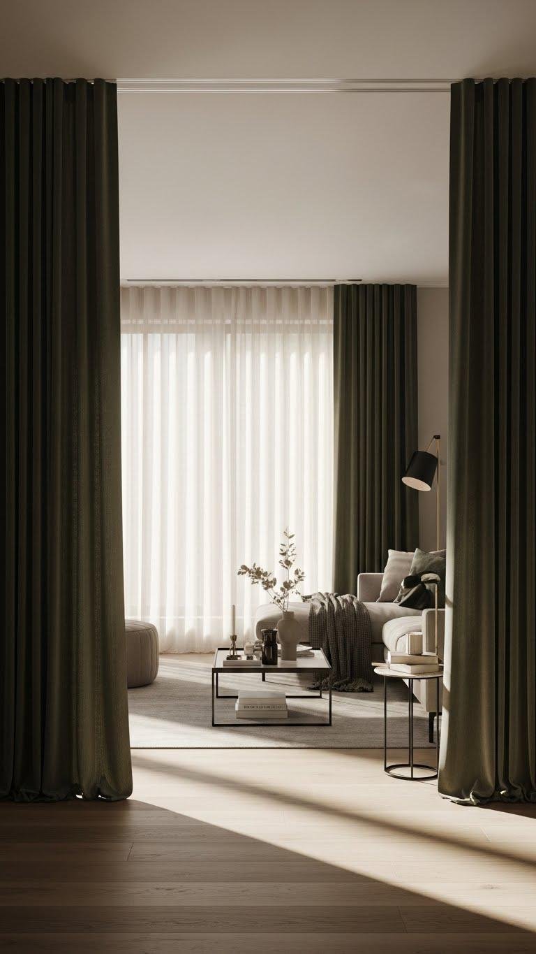 Choose Sheer Panels for light, Velvet Drapes for drama, and Layered Curtains to balance privacy with airiness. Install Hidden Tracks for a clean, liberated look that reads effortless and intentional.