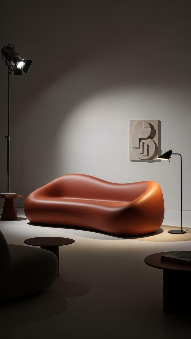 When you choose a sculptural sofa, make it the room’s focal point by treating it like a piece of art—let its form dictate scale, color, and the surrounding negative space.