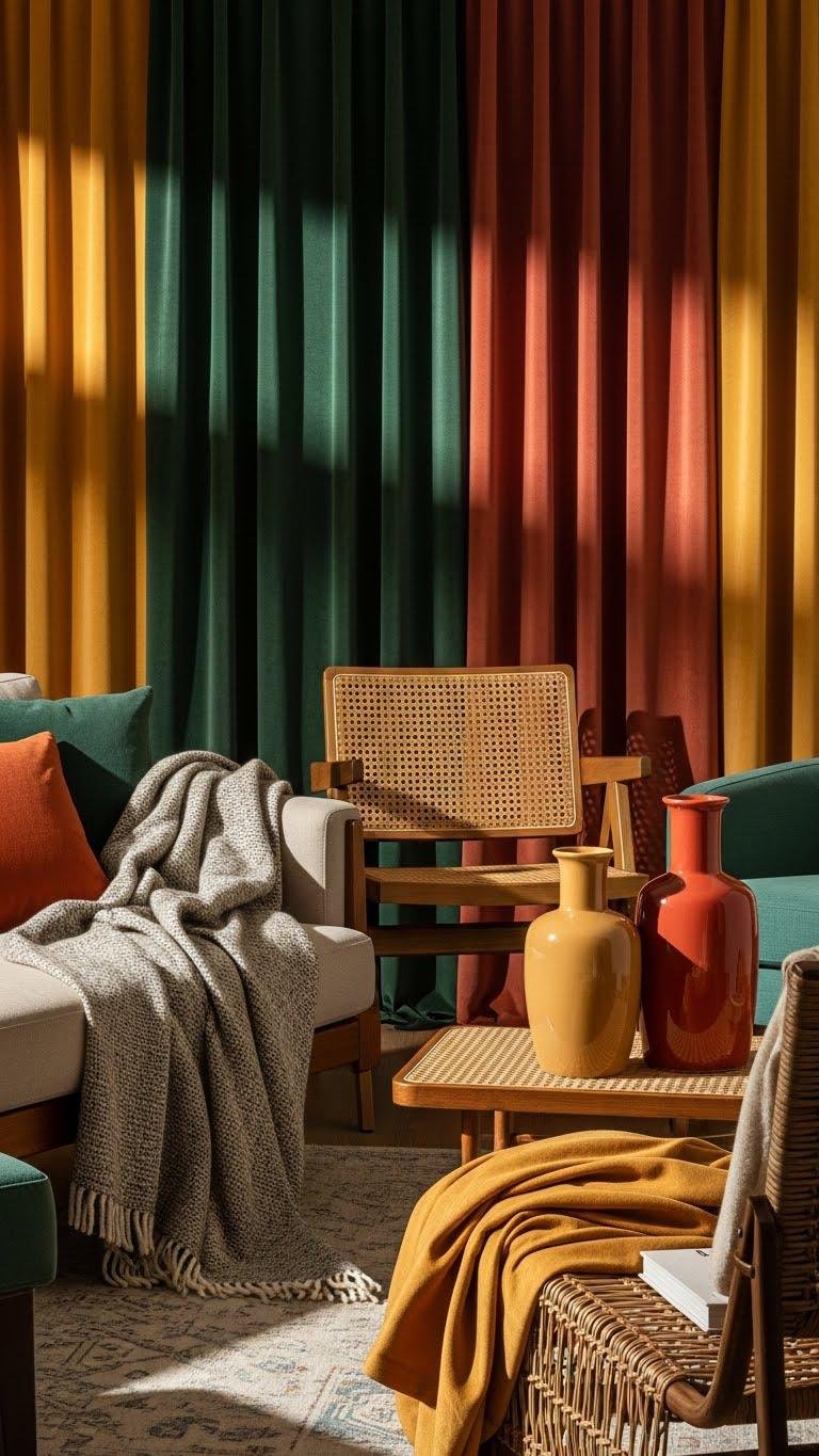 When you layer rich textures—velvet drapes, nubby wool throws, woven rattan, and glossy ceramic accents—you instantly give a room depth and a tactile personality that paint alone can’t achieve.