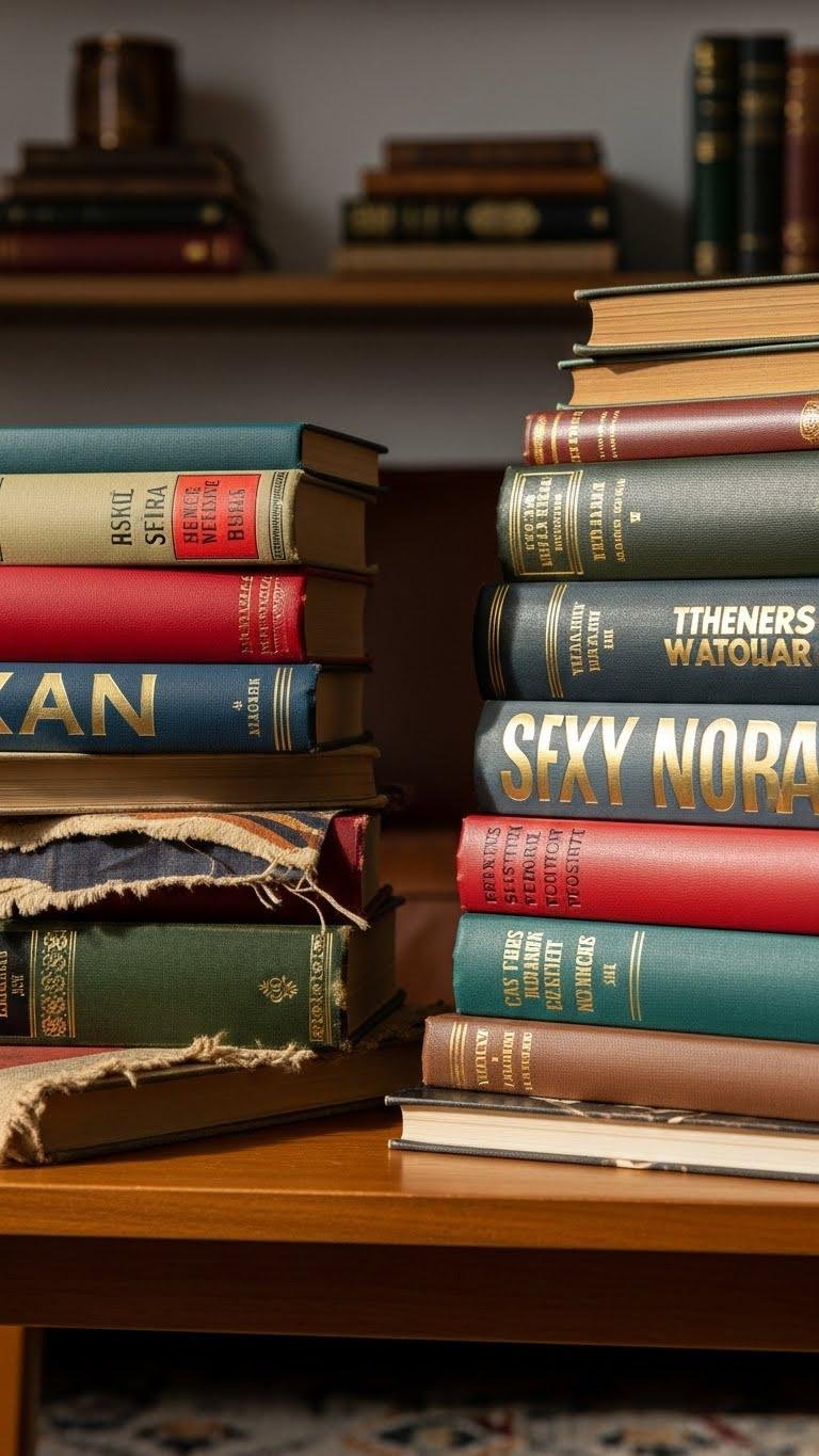 Books tell stories before you even open them, and vintage volumes make the best visual statements in a maximalist room. You’ll curate stacks by spine color, torn dust jacket charm, and unexpected typography play, turning books into sculptural accents. Mix worn leather, gilt edges, and bold covers on shelves or coffee tables; let each volume declare your taste and invite tactile exploration.