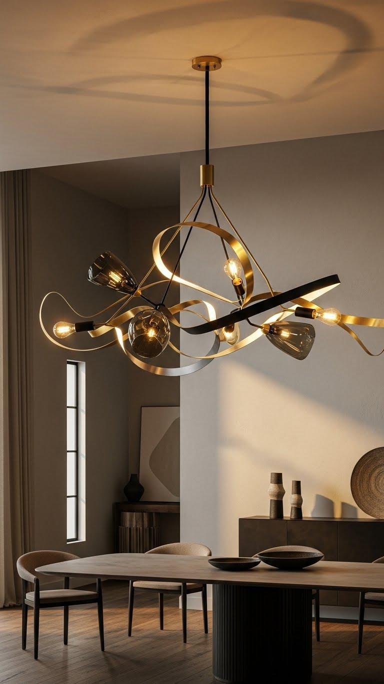Make a bold overhead move: an oversized sculptural chandelier doesn’t just light a room, it anchors the aesthetic and declares intent. You’ll choose an oversized silhouette that balances scale and motion, making a sculptural focal above dining or entry. Opt for daring materials, layered light, and confident placement so the fixture reads as art, not afterthought, and your space breathes unapologetic freedom.