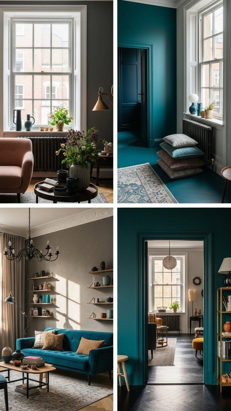 You’ll want rooms that feel unapologetic and lived-in, where jewel tones, sculptural lighting, and layered textiles work together like a confident outfit. Think bold wallpaper on one wall, a vintage ceramic cluster on a bookshelf, and velvet drapes that catch light just so. I’ll show practical ways to mix patinaed metals, oversized rugs, and curated clutter into cohesive, theatrical spaces — and how to avoid making them look like chaos.