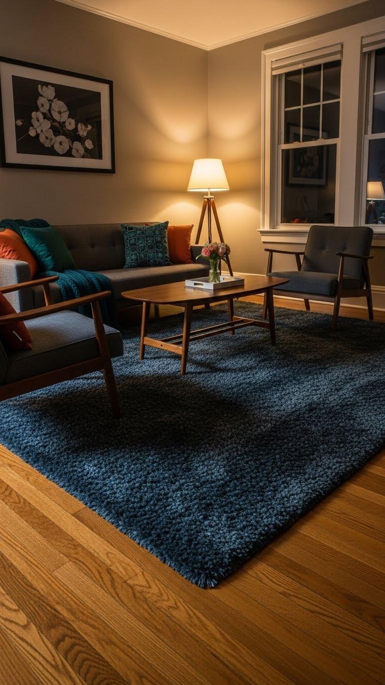 Tuck a lush, oversized rug over your hardwood and watch the whole room dial up its personality—plush pile softens the floor’s hard edges, anchors furniture groupings, and adds a theatrical layer of color and texture that feels deliberate, not accidental.