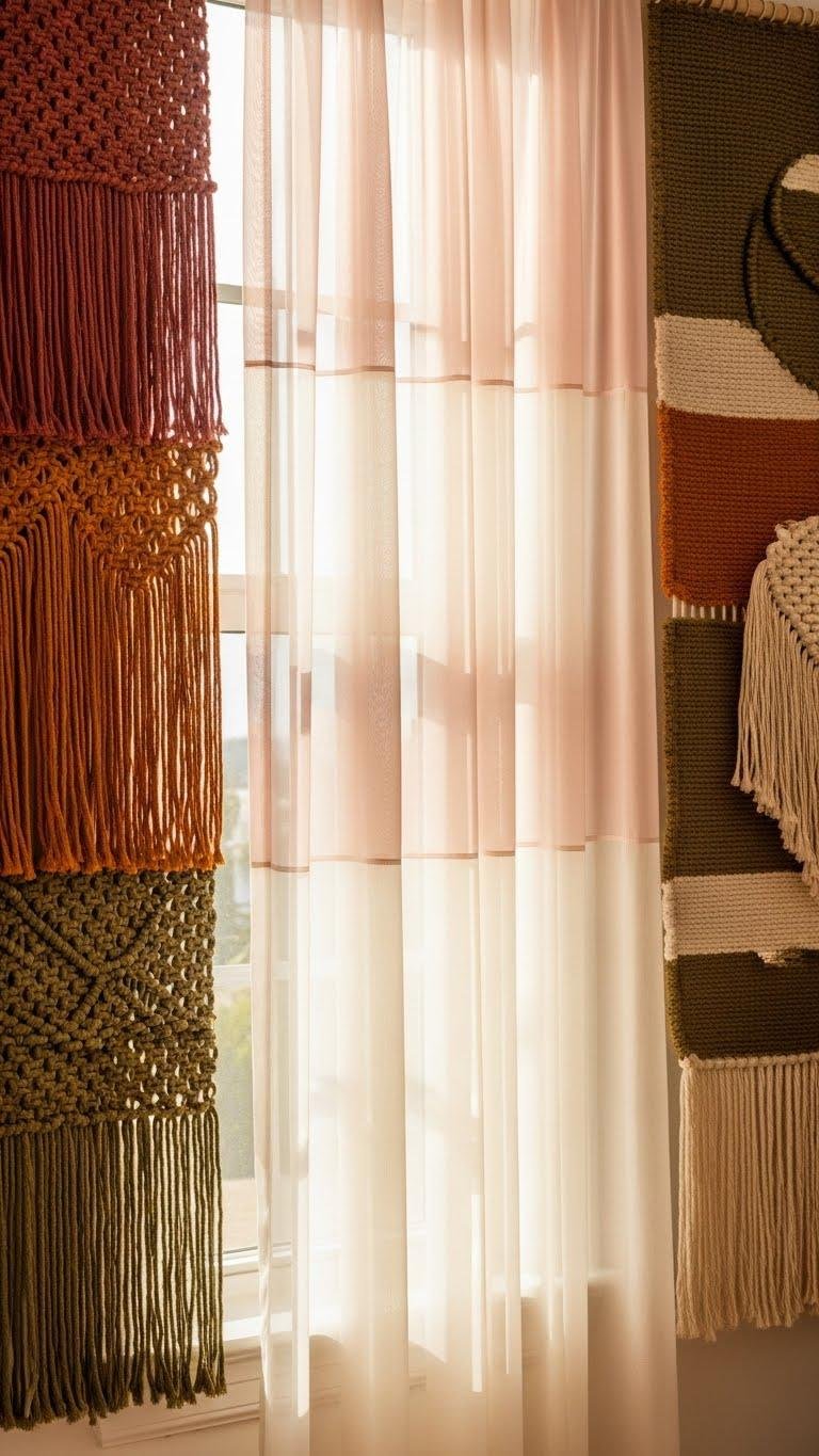 Embrace contrast: pair silk macramé pieces with loomed valances for depth.