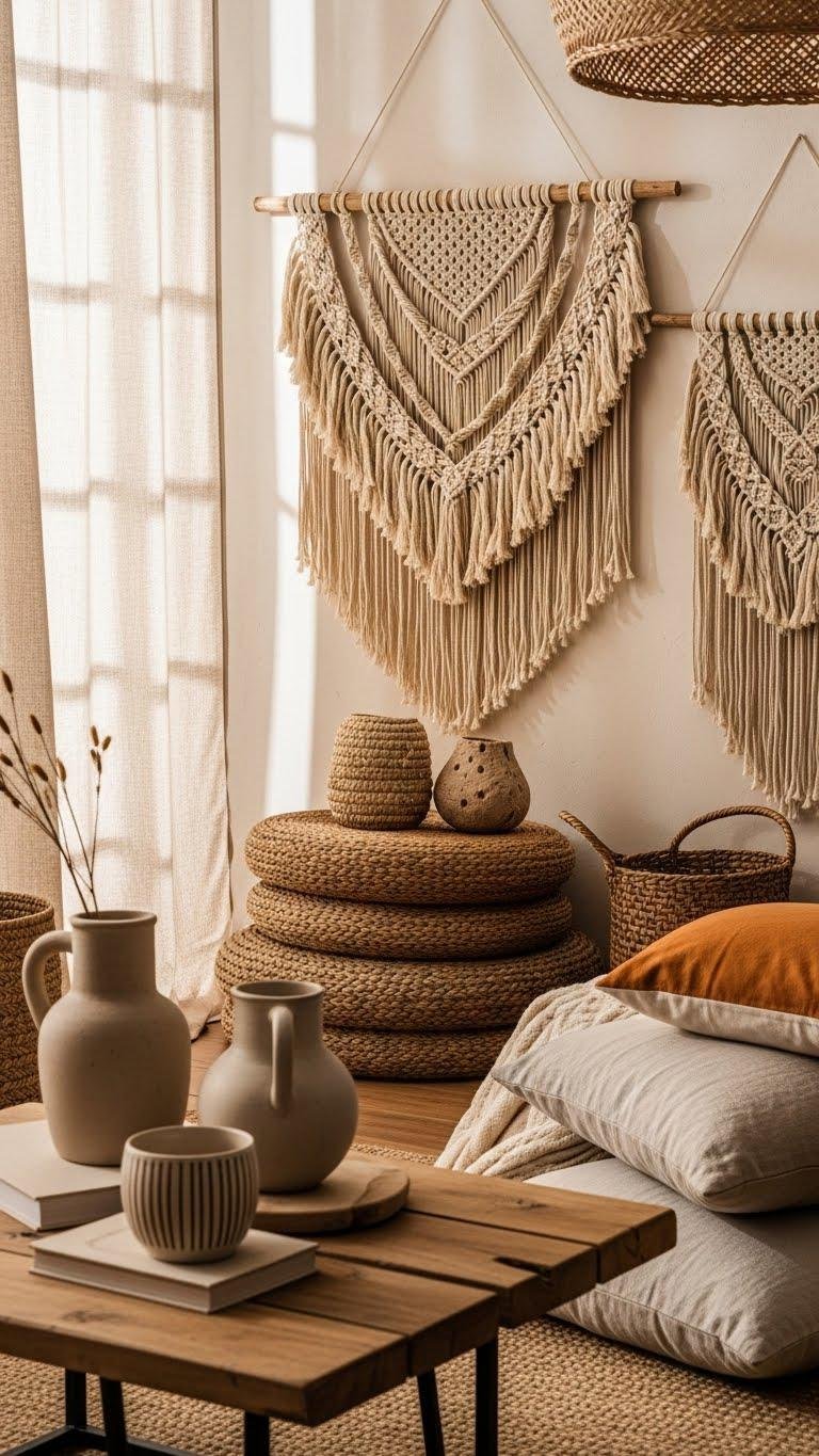 Layering earthy hues and tactile pieces brings a relaxed, curated bohemian vibe you can personalize with confidence. You’ll mix warm neutrals, sunbaked ochres and soft olives, pairing textured macramé wall hangings with layered jute rugs to create depth. Choose artisanal ceramics, raw wood accents and breezy linens that let your space breathe, reflecting a free, intentional lifestyle without fuss or trend-chasing.