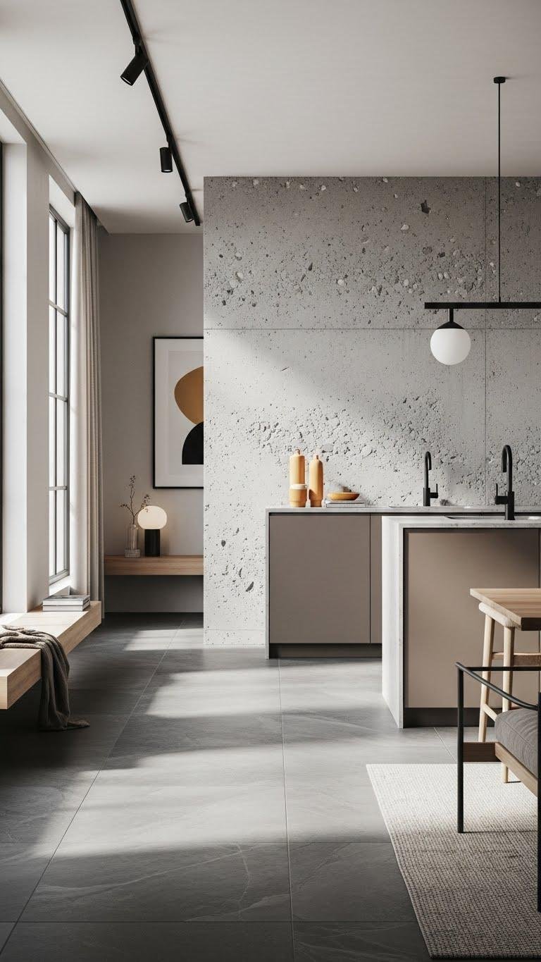 When you bring slate and concrete into a neutral scheme, they add a disciplined, tactile backbone that balances softer materials and warm accents.