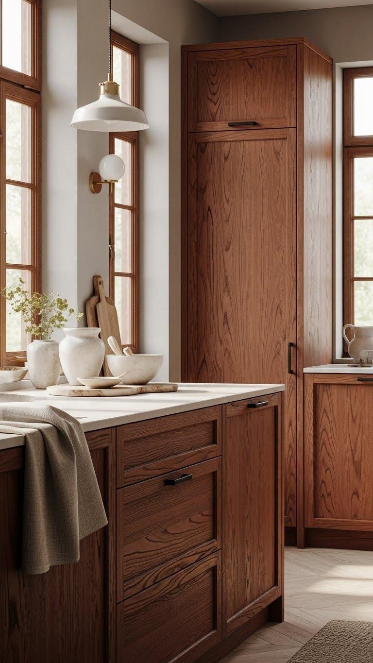 Drawing from warm, reddish-brown tones, sienna wood finishes bring an inviting depth to neutral interiors and anchor lighter elements without feeling heavy. You’ll choose sienna cabinetry to create effortless warmth, showcasing natural wood grain and rustic veneers that feel lived-in yet refined. Pair with subtle matte finishes to keep surfaces modern and versatile, letting your space breathe while staying distinctly grounded.